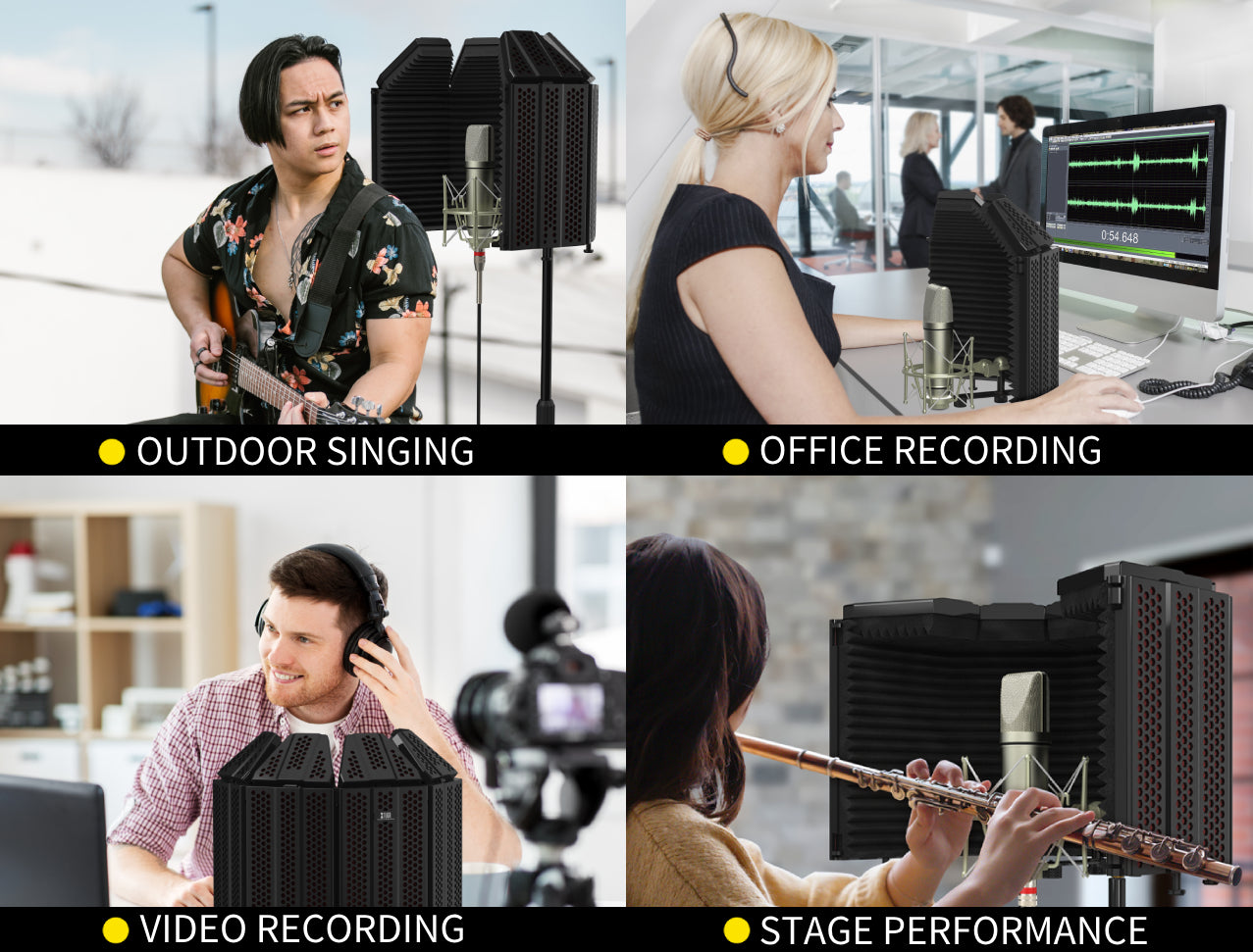 The microphone shield can meet different user needs as it is compatible with different microphones and can be fitted on different microphone stands. You can use the shield for podcasts and professional recordings.